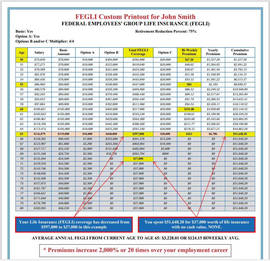 Find your FEGLI code on your paystub, if there is one, and then use the form below to figure out your options on the FEGLI Calculator form. Use the drop down to find the code (ex: F4) and the instructions will appear in the "What to do" box below. Many departments have no FEGLI code, making this process even more difficult. CONTACT US if you have no code or need personalized assistance. We will gladly help you through the process.