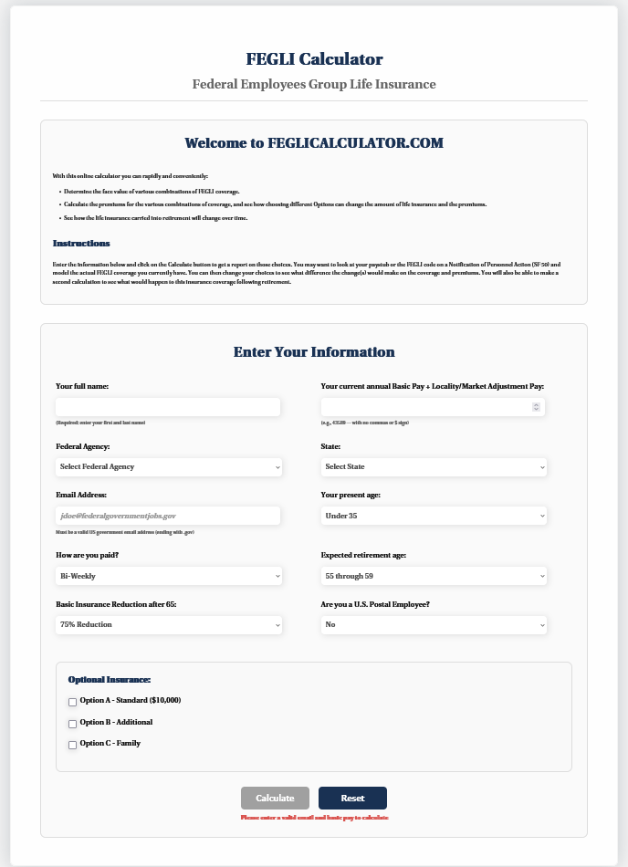 THE ONLY TRUE ONLINE FEGLI CALCULATOR THAT PROVIDES RESULTS!